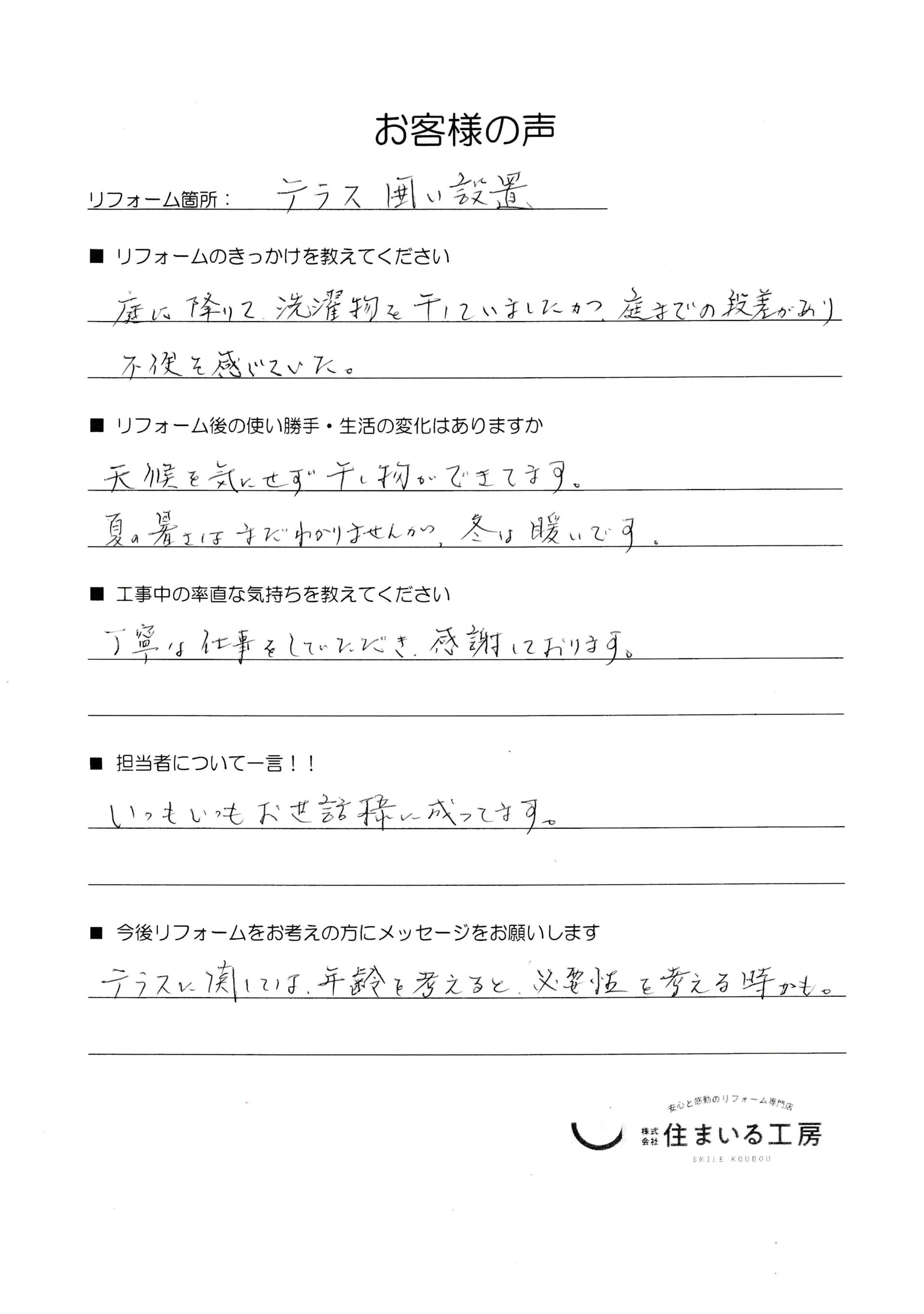 元々、屋根のみのテラスはありましたが、