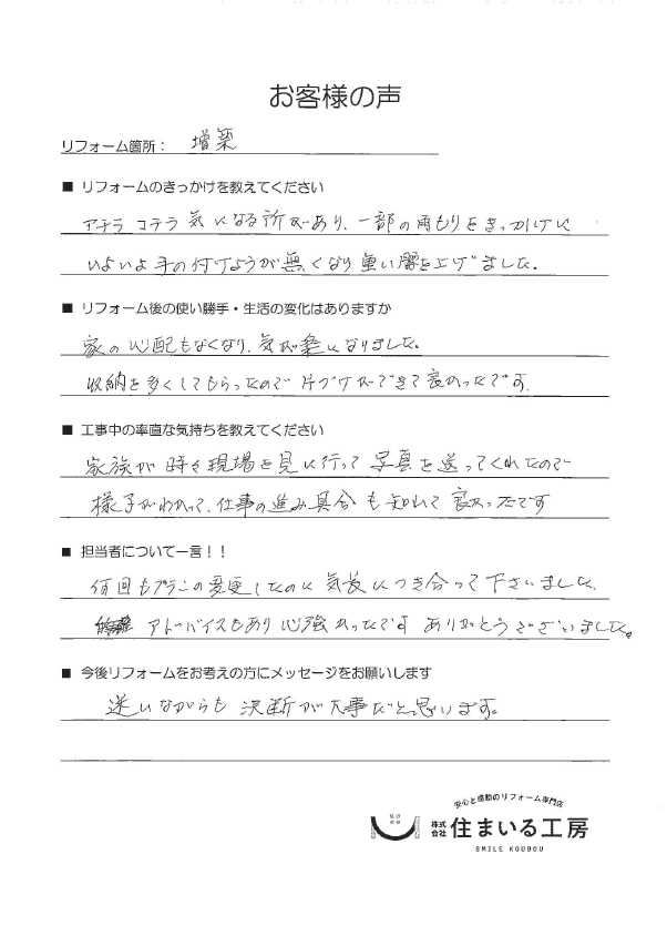 こちらの工事では、お客様の声をいただきました✨