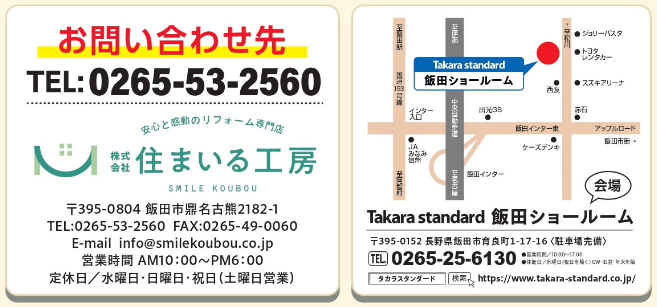 会場:飯田市育良町1-17-16 Takara standard 飯田ショールーム〈駐車場完備〉