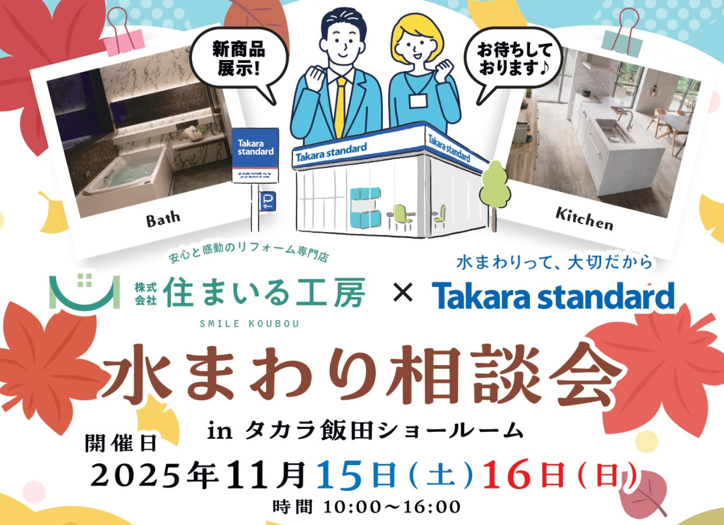 タカラスタンダードの飯田ショールームをお借りして、住まいる工房×タカラスタンダードの水回り相談会を11月15日~16日に行います。